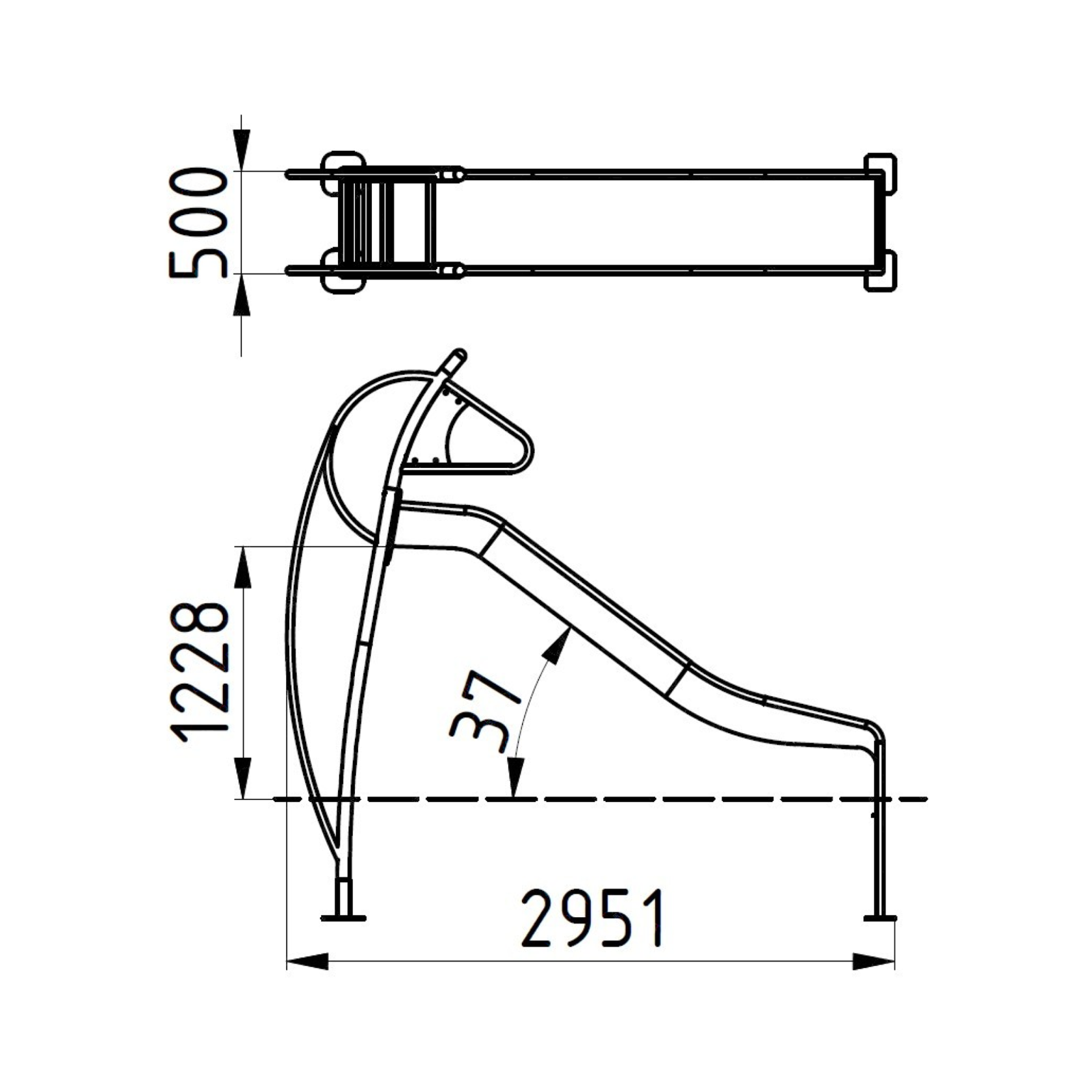 Отдельно стоящая горка из нержавейки (нержавеющей стали) с длиной 1200 мм. Горки комплектуются стойками по запросу.